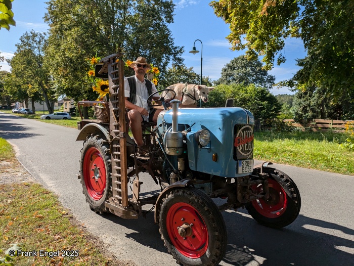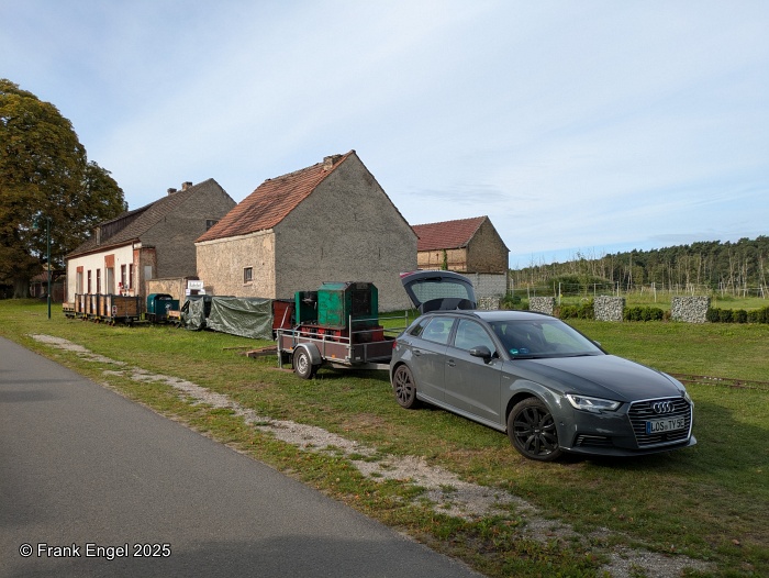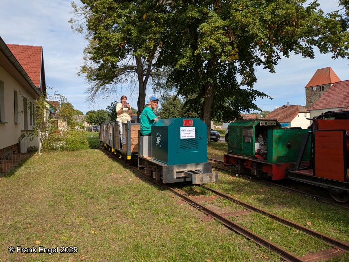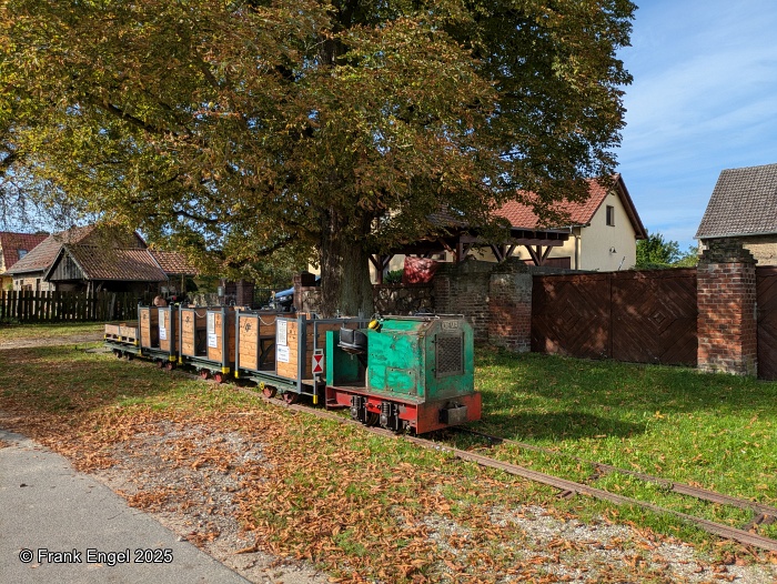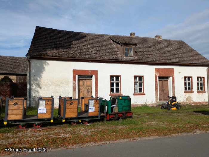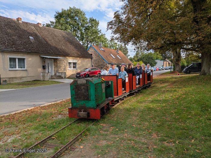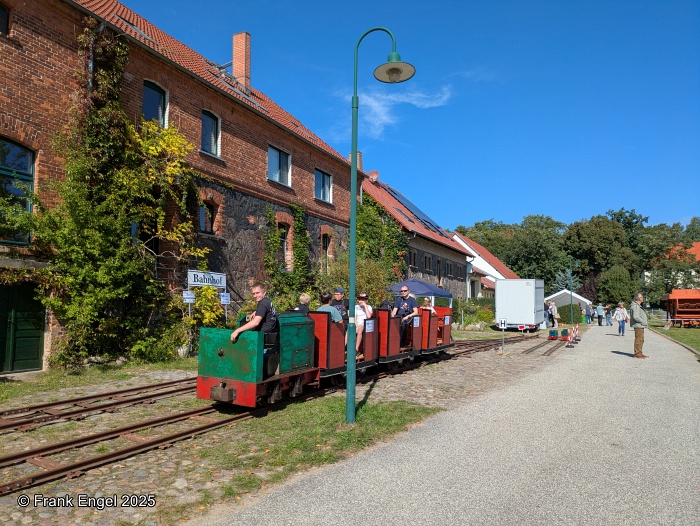 Für das diesjährige Herbstfest in Garzin hatte der örtliche Feldbahnfreund Chris Deichen den Aufbau einer 450 m langen, teilweise sogar zweigleisigen Feldbahnstrecke vom ehemaligen Dorfgasthof ("Konsumgastgätte Zum grünen Baum") bis zum Festplatz organisiert. Auf dieser Strecke fand den ganzen Tag ein intensiver Zweizugbetrieb statt, den wir vom Ziegeleibahnverein Herzfelde mit einer kompletten Zuggarnitur nebst Personal unterstützten. Der Einsatz aller Beteiligten wurde durch sehr schönes Wetter und eine rundum gelungene Veranstaltung belohnt.