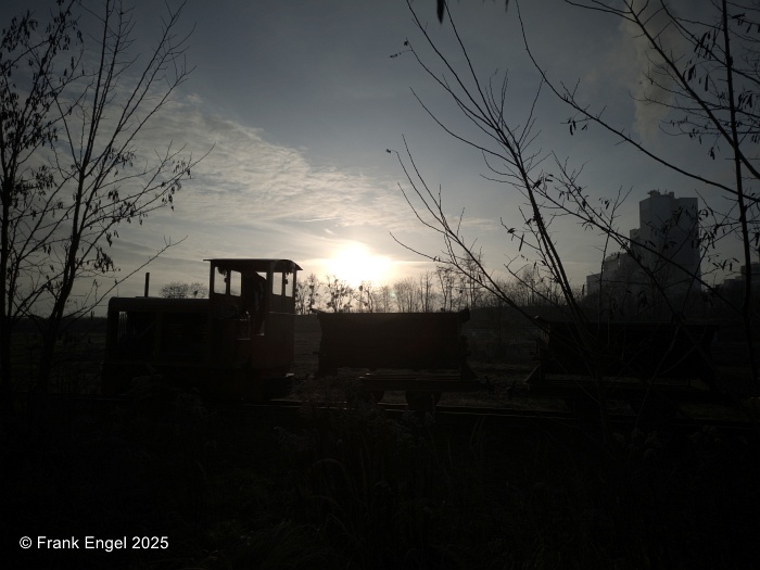 ![]() | 16. November 2025 Herbst und Winter sind vor allem Vorbereitungszeit für neue Bauvorhaben. Für den Wiederaufbau der 2017 abgebauten Gefällestrecke zur damals noch vorhandenen Straßenbrücke wurde angefangen, die Trasse freizulegen. In den letzten Jahren waren hier Robinien und anderes Buschwerk hochgeschossen. Die kurze Strecke soll künftig die Fahrmöglichkeiten erweitern und einen authentischen und abwechslungsreichen Betrieb ermöglichen. | ![]() | 20. Dezember 2025 Beim wohl letzten Arbeitseinsatz des Jahres standen Aufräumarbeiten im Umfeld des Lokschuppens im Fokus. Im letzten Licht des Tages durfte dann die gelbe Ns2f noch mal mit den großen Loren auf die Strecke. |